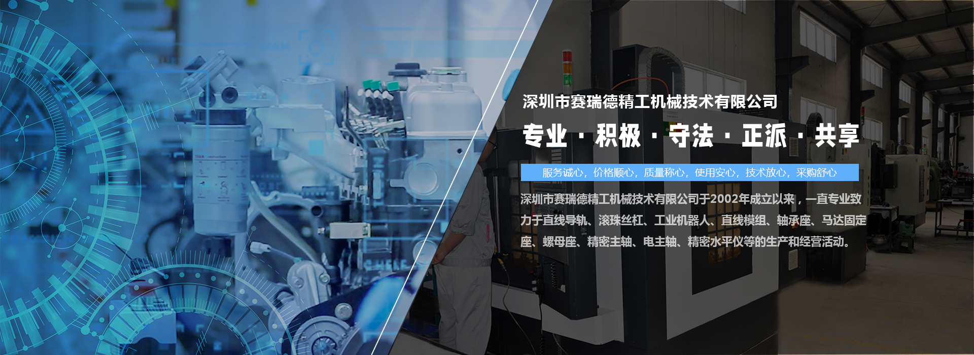 深圳市賽瑞德精工機械技術(shù)有限公司于2002年成立以來,一直專業(yè)致力于直線導(dǎo)軌、滾珠絲杠、工業(yè)機器人、直線模組、軸承座、馬達(dá)固定座、螺母座、精密主軸、電主軸、精密水平儀等的生產(chǎn)和經(jīng)營活動。